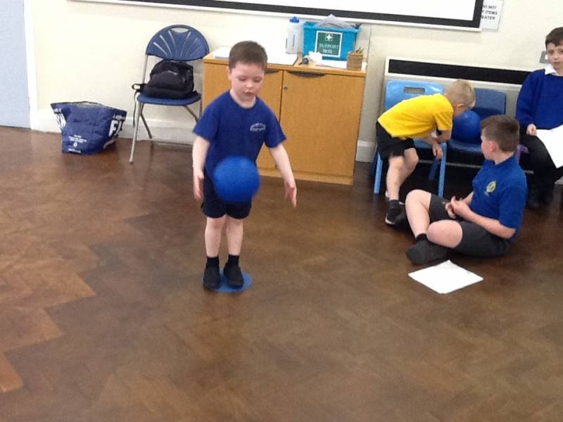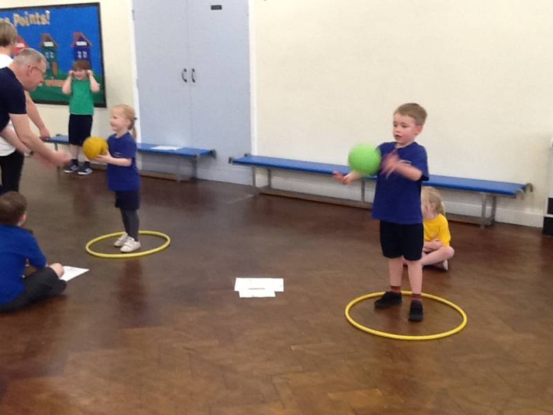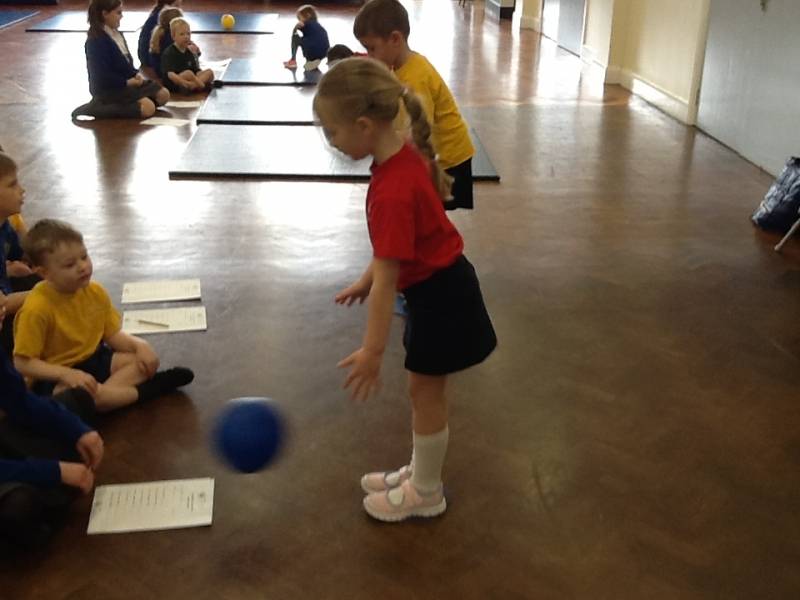 The children did six activities - shuttle run, bounce and catch, jumping in a hoop, rolling the ball up and down their body, sit to stand, throw and catch the ball. They tried to better their scores from last term.