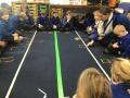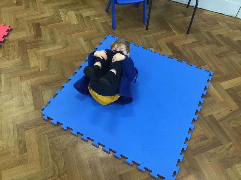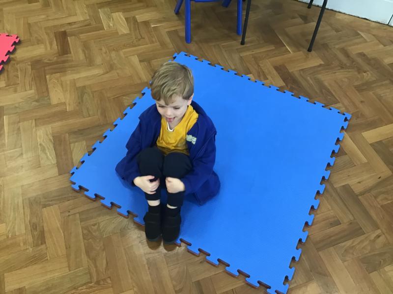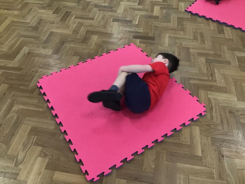In PE, we practised our rolls from last week (egg and log). We built on our rocking and rolling by trying to propel ourself enough to get to standing.