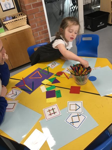In maths, we have spent the week looking at shapes. We have discussed the properties of shapes (corners, sides and angles). The children are great at naming the properties and they are the same / different. Ask the children if they can tell you about triangles, circles, squares and rectangles.