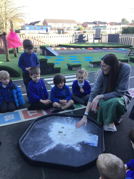 The children have been learning all about the moon landings in the Apollo 11, in 1969. We have looked at the surface of the moon and tried to created our own moon craters with rocks and flour.